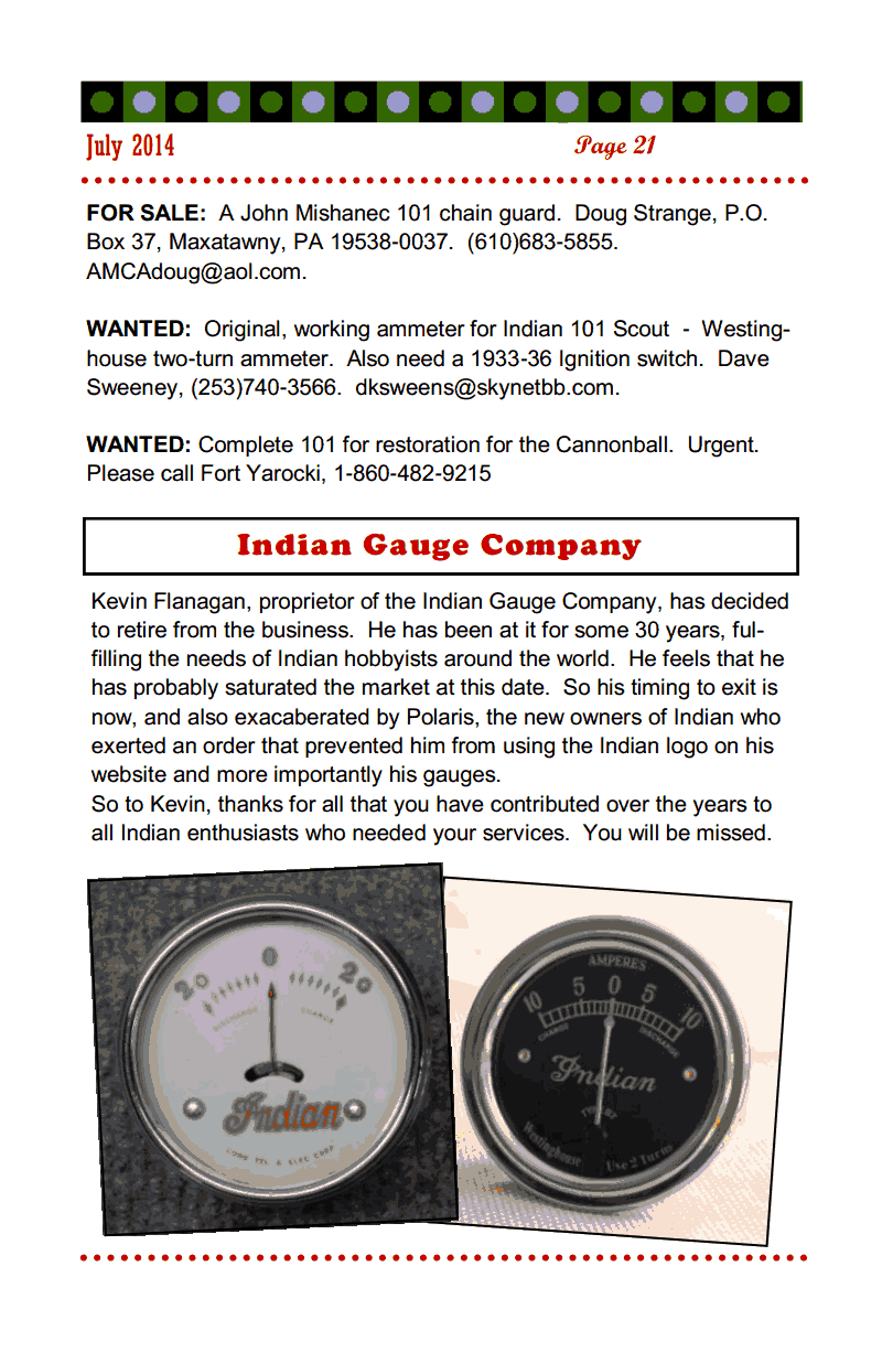 Jim Walther, der Präsi des amerikanischen Indian 4 Club hat sich mächtig ins Zeug gelegt um etwas Licht ins Dunkel zu bringen. Er konnte inzwischen mit 2 Verantwortlichen bei Indian in Verbindung treten.