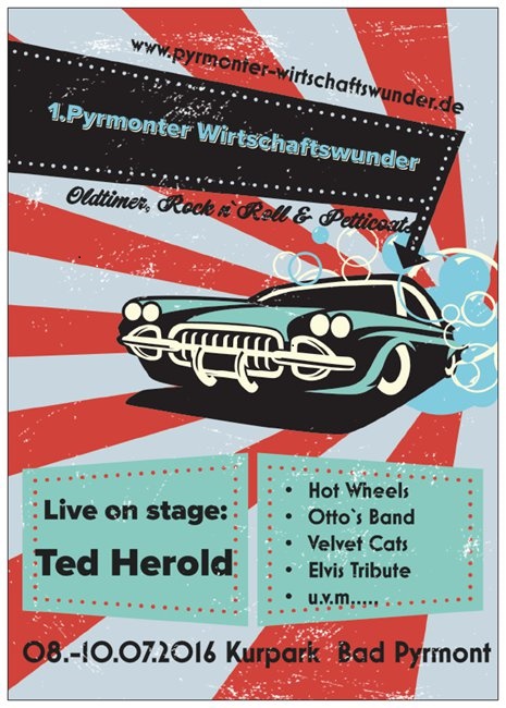 1. Pyrmonter Wirtschaftswunder stattfinden. Eine Veranstaltung für die ganze Familie. 3 Tage lang gehen wir zurück in die 50er bis 60er Jahre. Geboten wird neben Musik, Historischen Fahrzeugen und Kulinarischem natürlich auch Schönes und Seltenes sowie Tragbarem und Möbeln eben alles was diese Zeit zu bieten hatte. Wer Spass an solchen Events hat oder selber auch Händler oder Aussteller ist oder lust hat sein Fahrzeug dort zu präsentieren, der kann auf