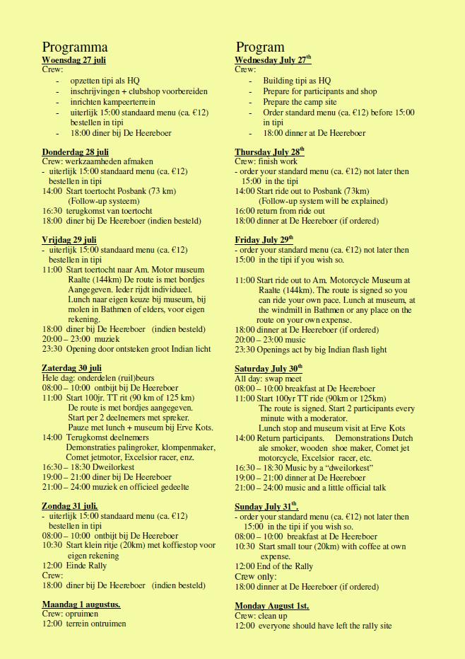 der Holländische Club hat Probleme mit der Website und kann daher das Programm nicht hochladen. Daher hat Dik Toersen, der Präsident, mich gebeten, das Programm hier ins Forum zu stellen. Siehe Anlage.