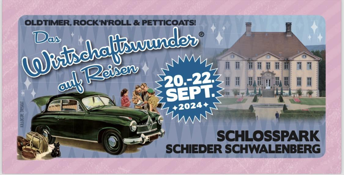 Es geht wieder los, Oldtimer, Rock´n´Roll & Petticoats.....das Wirtschaftswunder geht auf Reisen...vom 20.-22.09.2024 gastieren wir im schönen Schlosspark von Schieder-Schwalenberg/OWL