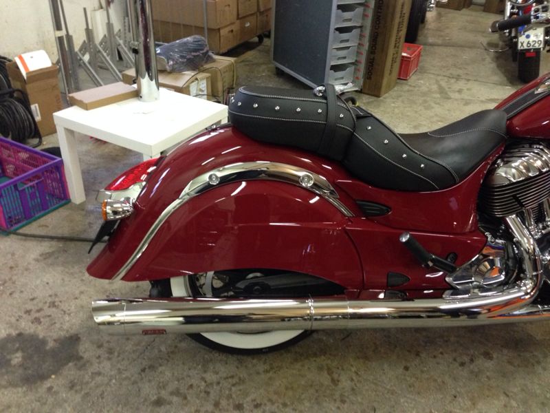 Bisschen zu chromig für meinen Geschmack, aber ansonsten nicht schlecht. Habe den Eindruck, dass sich Indian unter den neuen Eigentümern Polaris, stärker bemüht, an die Tradition anzuknüpfen. Liegt ja auch eigentlich auf der Hand. Wenn die jetzt noch ne Kiste im 30iger Jahre Stil rausbringen, könnte es passen.